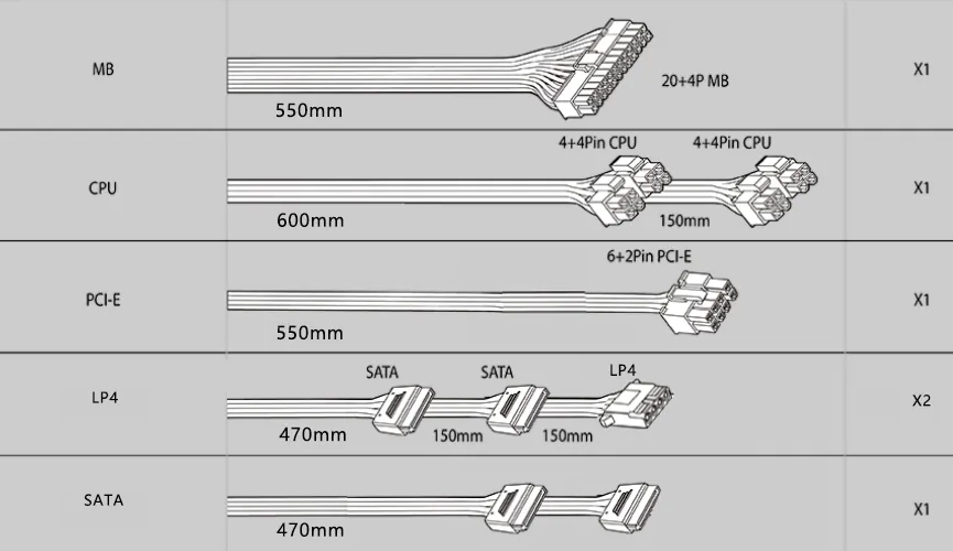 線材長度與規格根據不同硬體需求設計,確保靈活安裝和良好連接,以方便用戶選擇合適的連接方案,確保系統穩定運行。