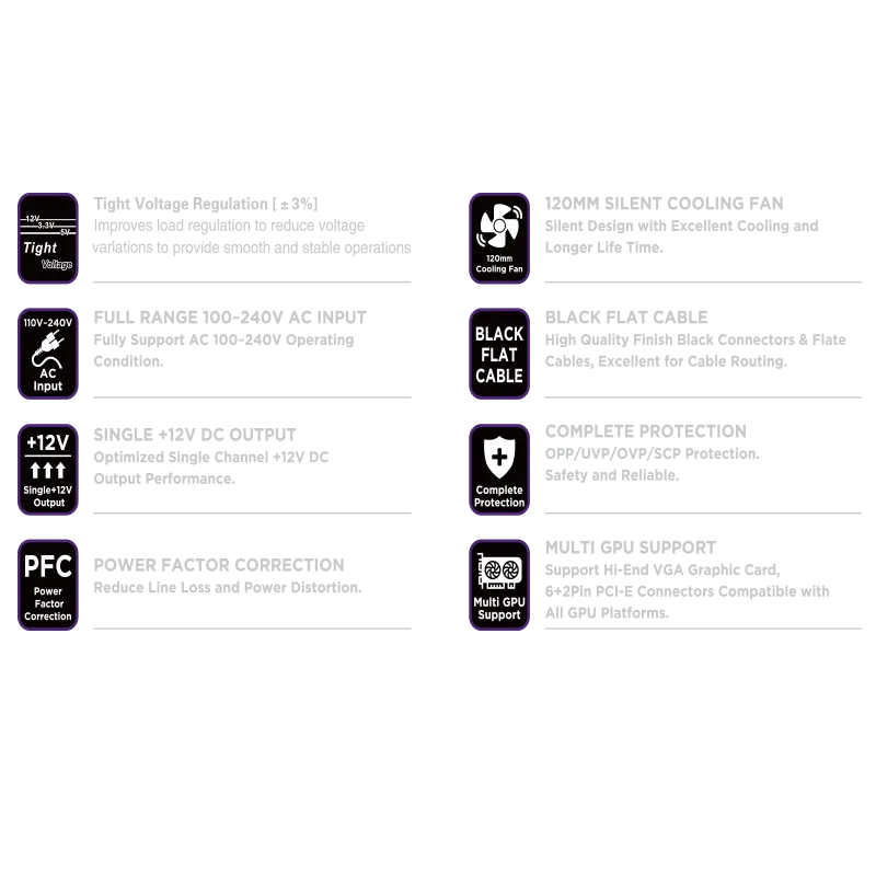 內建OPP、UVP、OVP、SCP保護機制,增強安全性。