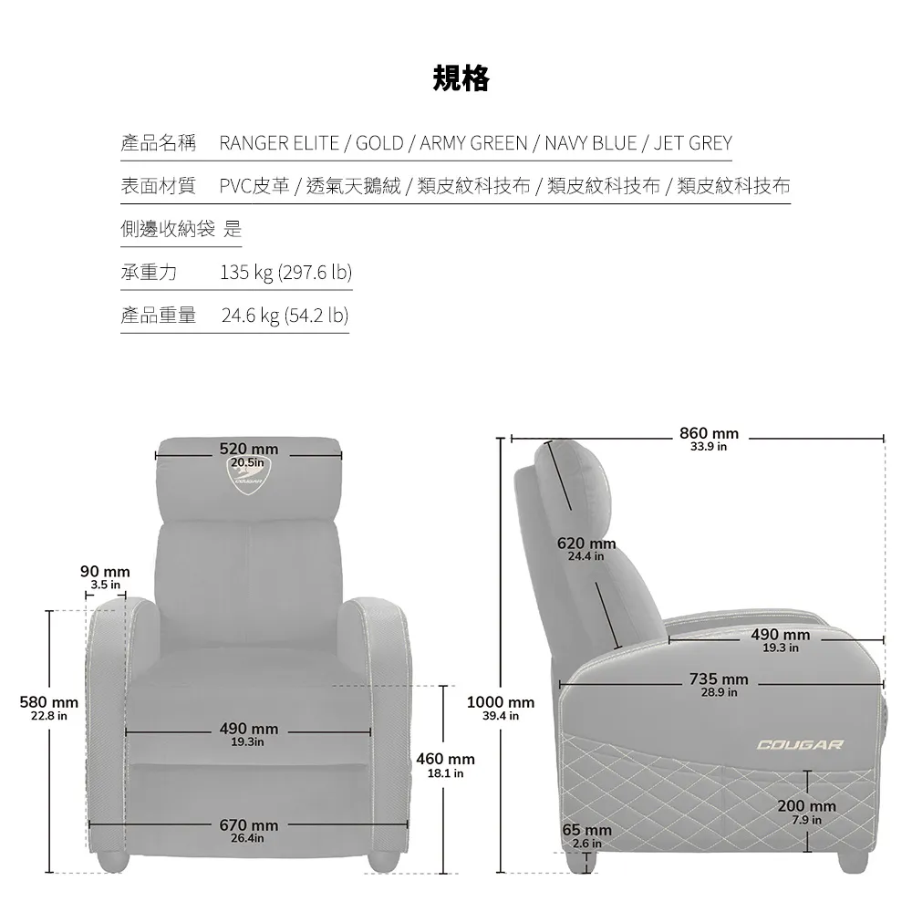 首頁 > 產品介紹 > 【COUGAR 美洲獅】RANGER ELITE 電競沙發椅