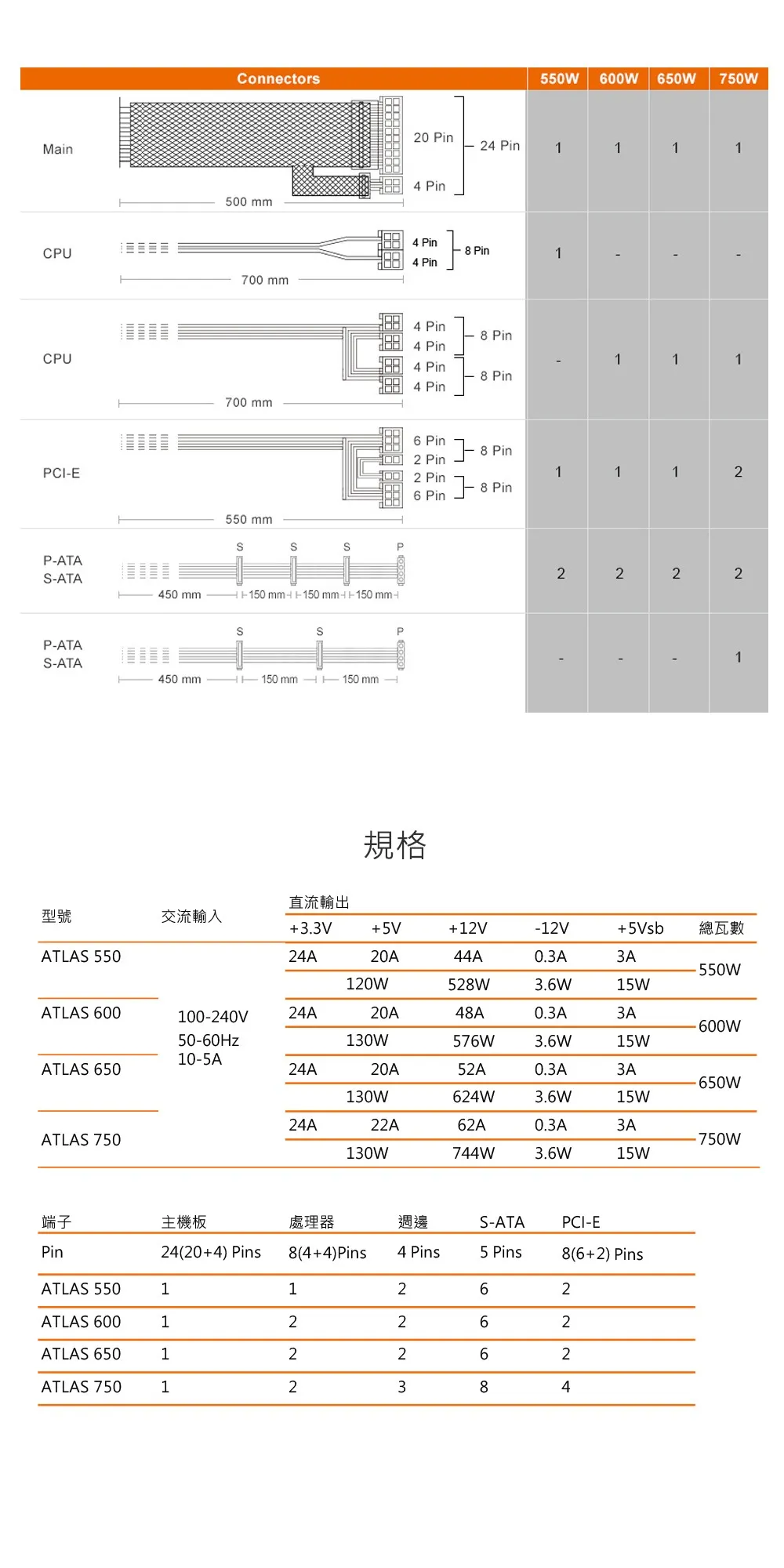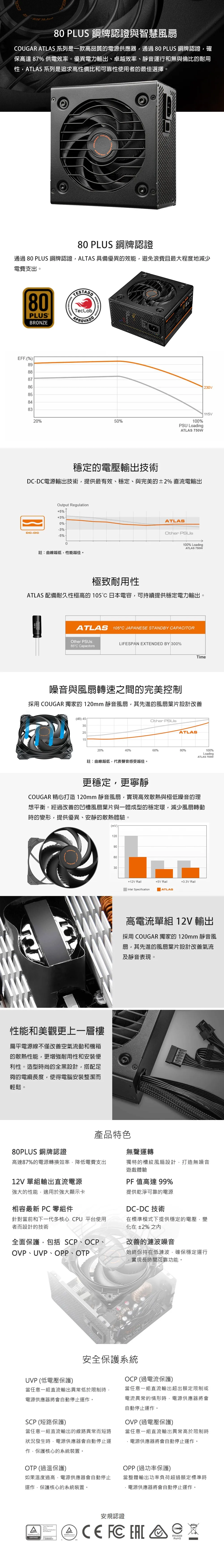 首頁 > 產品介紹 > 【COUGAR 美洲獅】ATLAS 750w 銅牌電源