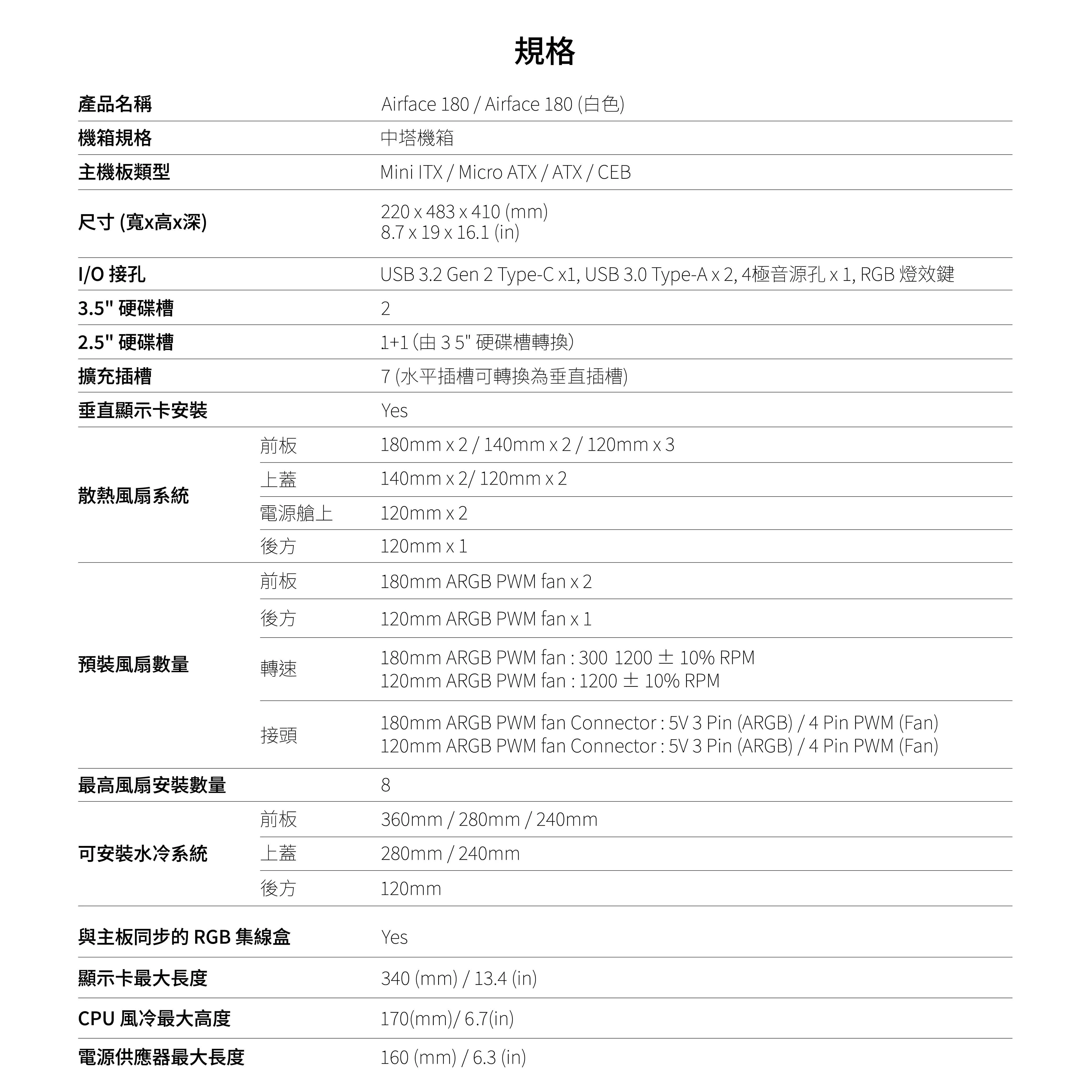 首頁 > 產品介紹 > 【COUGAR 美洲獅】AIRFACE 180 RGB 白色 電腦機殼