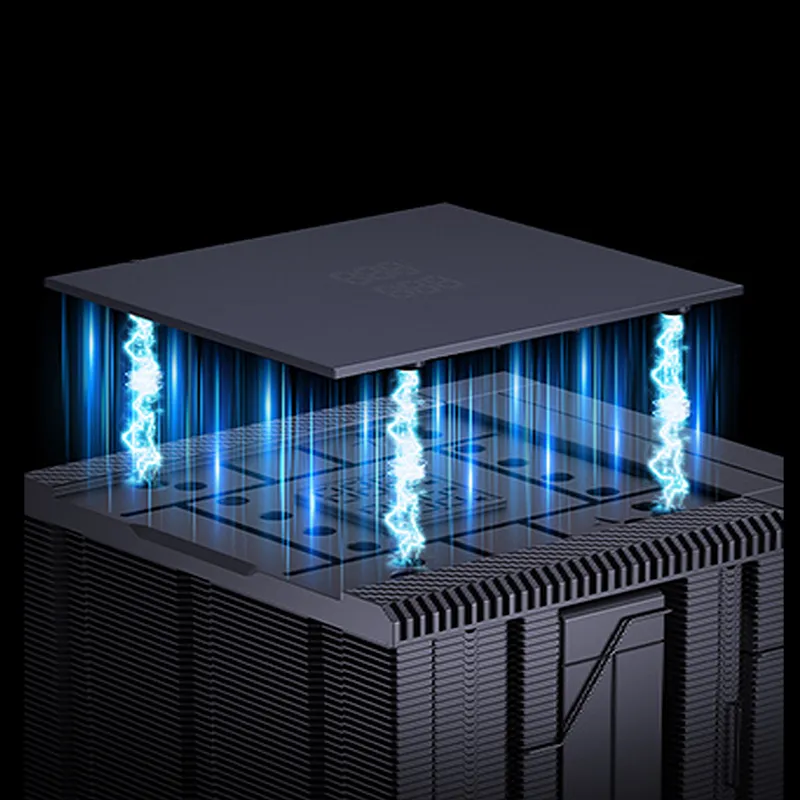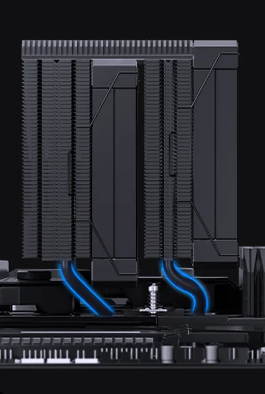 採用 8根高效熱導管,搭配 雙塔鰭片結構,大幅提升散熱接觸面積,迅速導熱、降低核心溫度。