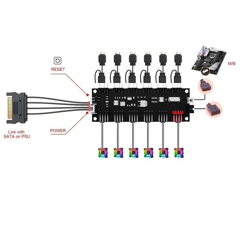 PRO版本提供六口燈光控制板,具備以下功能:6組ARGB 5V 3PIN燈光輸入端6組PWM風扇供電輸入端1組ARGB 5V 3PIN主板同步連接端1組PWM主板供電連接端LED 按鈕功能說明:單按:切換燈光模式長按 3 秒(燈光定格狀態下):進入 主板同步模式再次長按 3 秒:返回 手動燈光模式(可變換燈效)長按 5 秒:關閉燈光1組SATA電源供應器輸入端1組機箱LED按鈕輸入端LED按鈕可切換燈光模式與主板同步功能,長按3秒進入切換模式,長按5秒關燈模式產品參數
