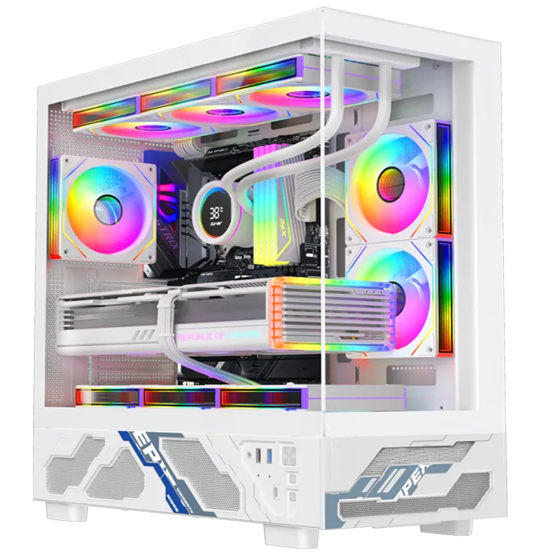 L210 全景玻璃升級版,導入 電競風格包艙飾板,展現更具張力的獨特外觀。機身配置 9 組 120mm 風扇安裝位,形成高效氣流循環;並支援 頂部 360mm 水冷排,進一步強化散熱性能,確保整機穩定運行。燈光效果極致展現不論是側視還是正面觀賞,風扇燈效皆能完整呈現,打造震撼的視覺氛圍。機身設計全面支援 寬體主機板,有效避免與側板風扇干涉,兼顧美觀與實用。更可搭配 ABYSS-T 溫度顯示 360 一體式水冷,實現整機風扇燈效與性能的完美融合,呈現頂級一體化美學體驗。線材精簡,安裝俐落——告別繁瑣接線