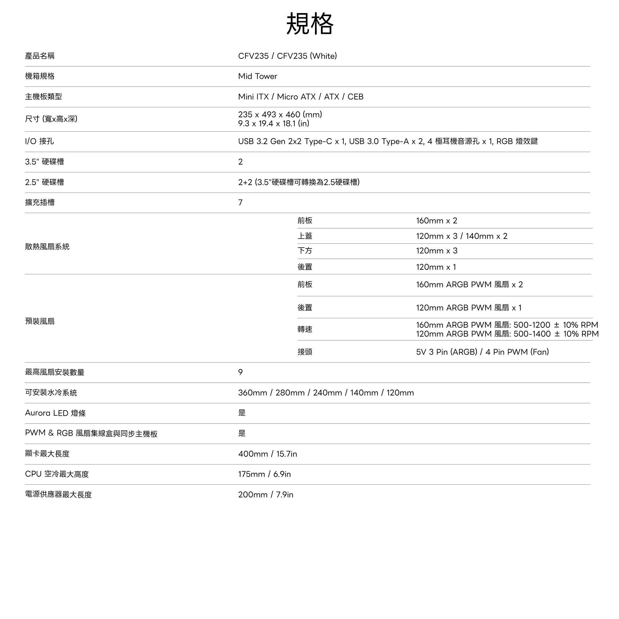 首頁 > 產品介紹 > 【COUGAR 美洲獅】CFV 235 玻璃海景房 白色 電腦機殼