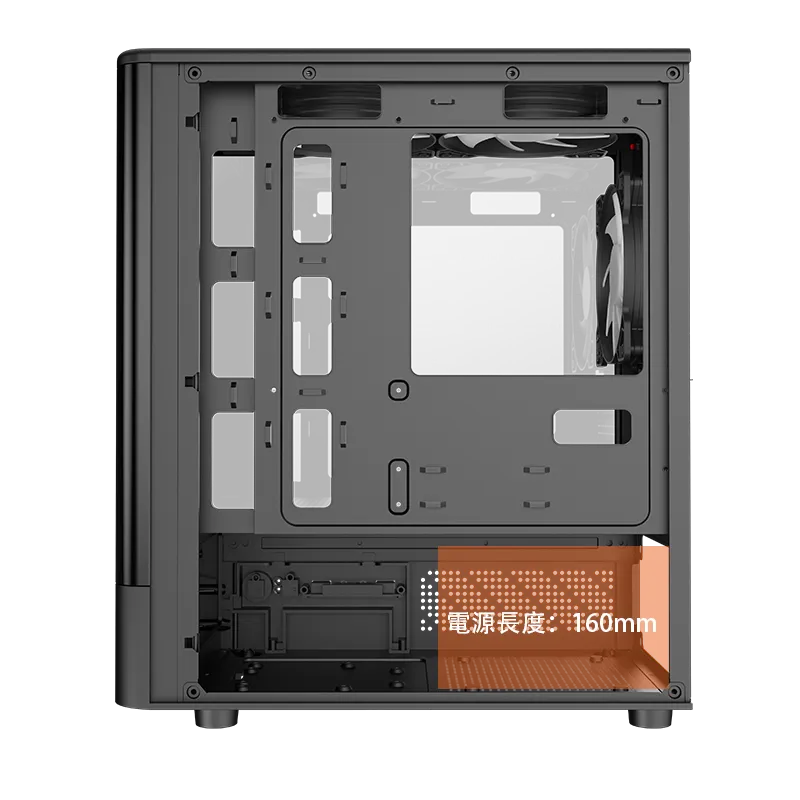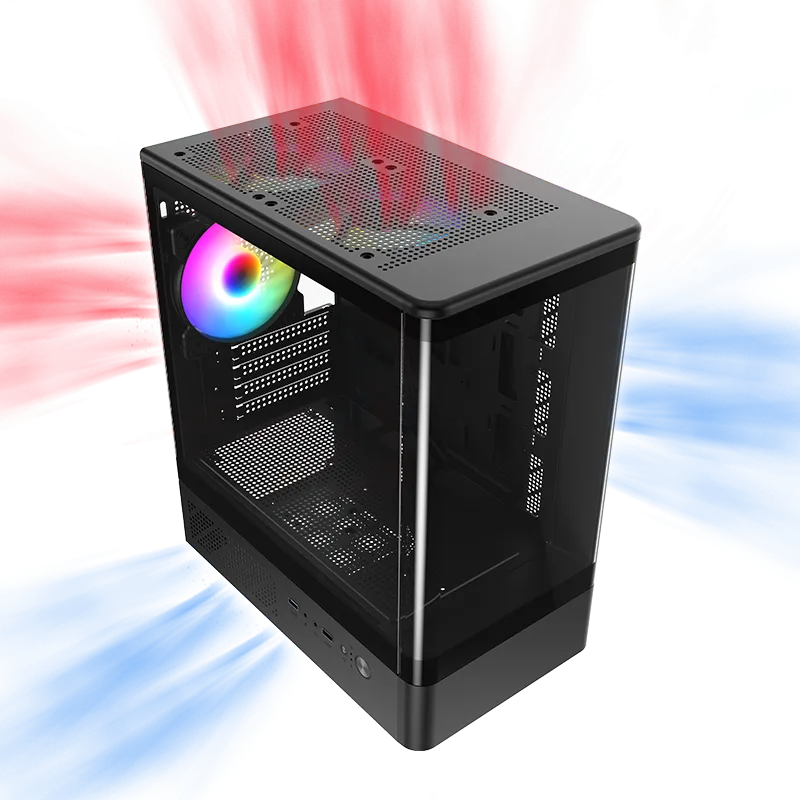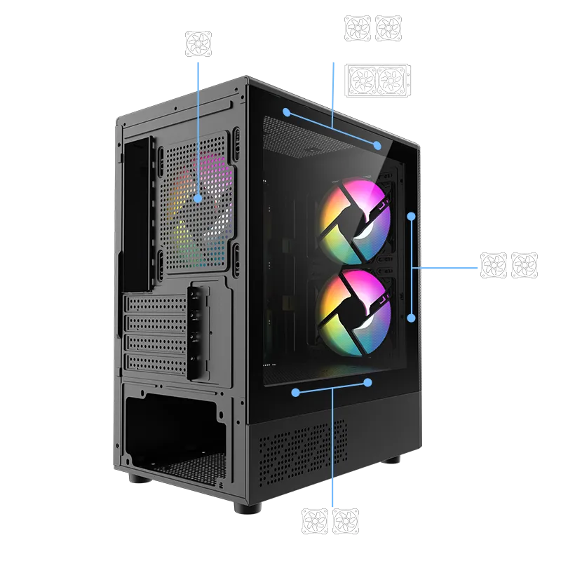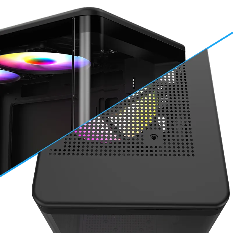 支援多風扇安裝配置:頂部 120mm ×2、後部 120mm ×1、底部 120mm ×2,全面打造卓越散熱效能,確保系統長時間穩定運行。