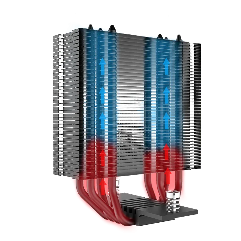 採用 44 片 0.3 mm 純鋁鰭片,並以等距精密排列設計,有效擴大散熱面積,快速吸收並分散熱管導出的熱能,在高負載環境下,依然維持穩定且高效率的散熱表現。