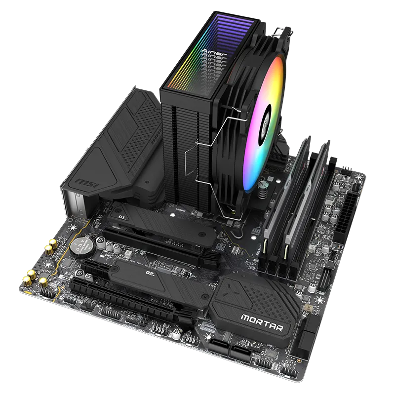散熱器主體採用獨特的偏移式結構設計,有效避開 RAM 安裝區域,大幅降低記憶體干涉風險,提升整體安裝空間的靈活性與相容性,即使搭配高散熱片 RAM,也能安心安裝、穩定使用。