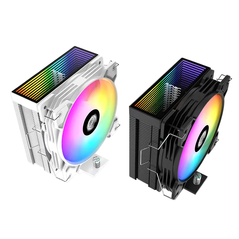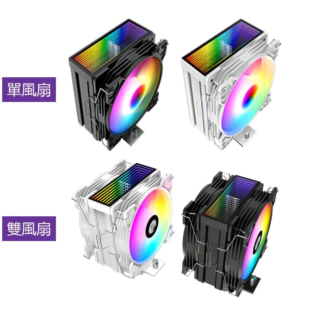 提供黑色與白色兩種配色,並支援雙風扇版本選擇,輕鬆融入各式機箱風格配置。黑色款呈現如深邃森林般的炫目光效,低調沉穩中蘊含強烈性能氣息;白色款則以潔白機身搭配柔和燈效,展現純淨細膩的優雅視覺。兼顧散熱效能與外觀美學,滿足不同玩家對風格與性能的雙重追求。